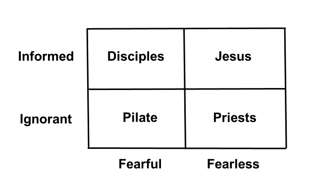 Jesus is the man. Jesus is our King. He is our model, our pattern. We take our lead from him. Jesus did not seek to get even or take revenge on Caiaphas. Jesus was fearless in the face of condemnation and death, knowing God’s purpose would prevail. Jesus did not act out of ignorance but rather out of informed integrity.